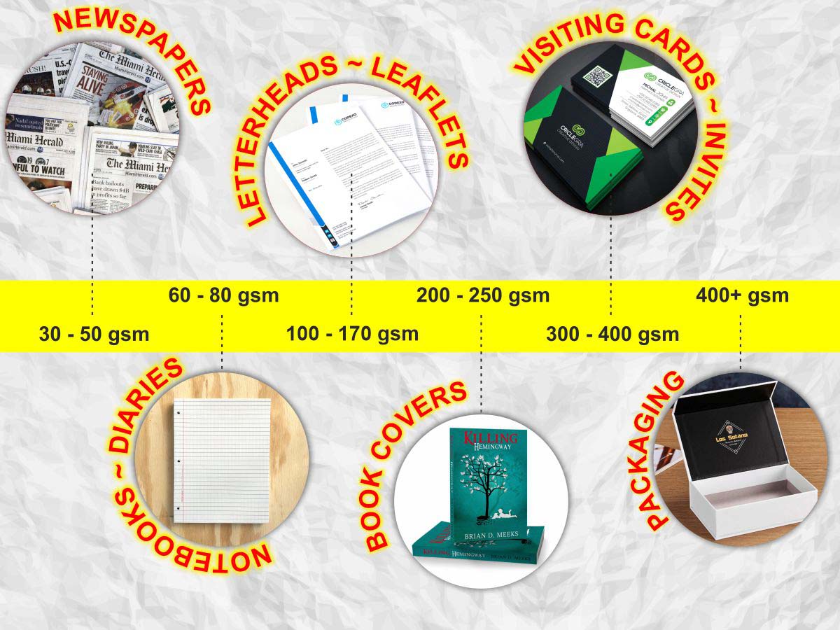To make things easier for you to understand, I have created a chart that shows which GSM papers are generally available at a print shop and what their end application could be…